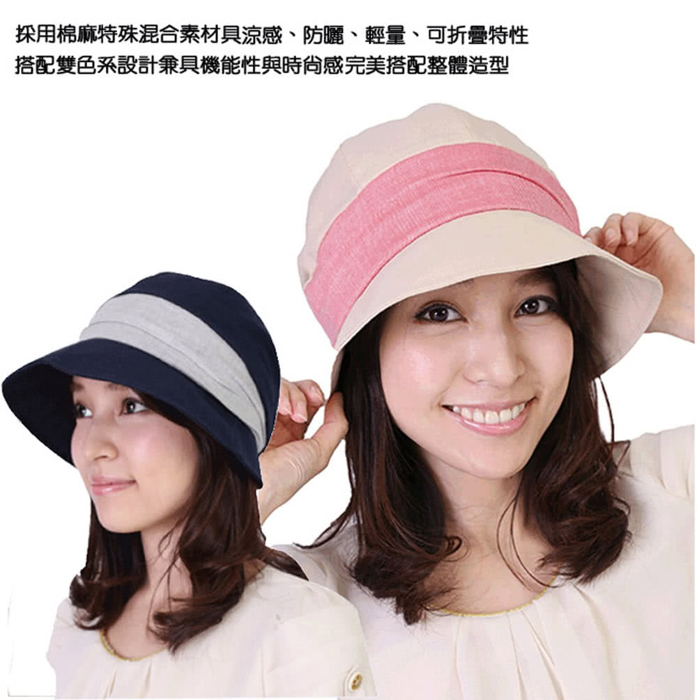 ☆本體採用棉麻特殊混合素材,具涼感、防曬、輕量、可折疊特性,搭配雙色系設計,兼具機能性與時尚感!完美搭配整體造型