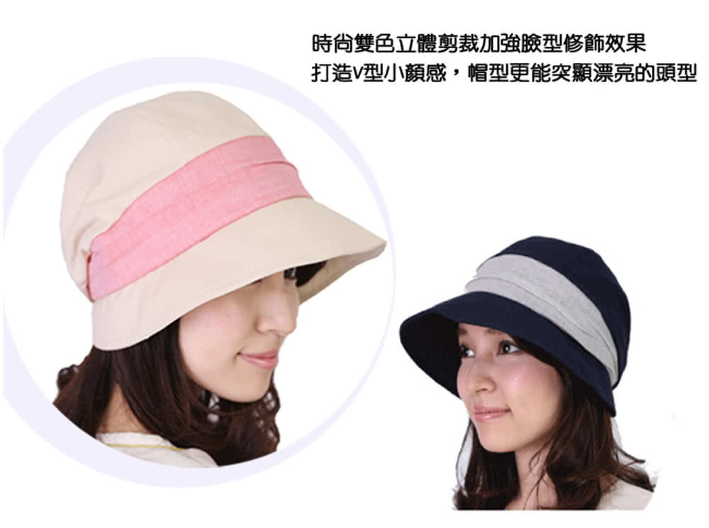 ☆帽緣下壓設計+時尚雙色立體剪裁加強臉型修飾效果,打造V型小顏感,帽型更能突顯漂亮的頭型